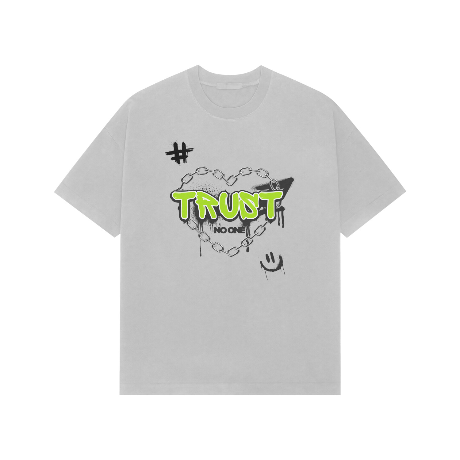 Level up your streetwear game with our bold “Trust No One” Heart Chain Tee. Featuring a graffiti-style neon green “TRUST” text inside a heart made of metallic chains, this design screams raw attitude and urban edge. Perfect for those who live by their own rules, this tee pairs perfectly with ripped jeans, hoodies, and sneakers. Made for rebels, creators, and everyone who refuses to blend in.